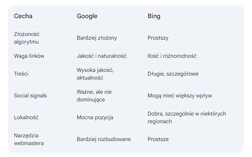 Bing często faworyzuje treści długie i szczegółowe, które dostarczają użytkownikom kompleksowych informacji.
