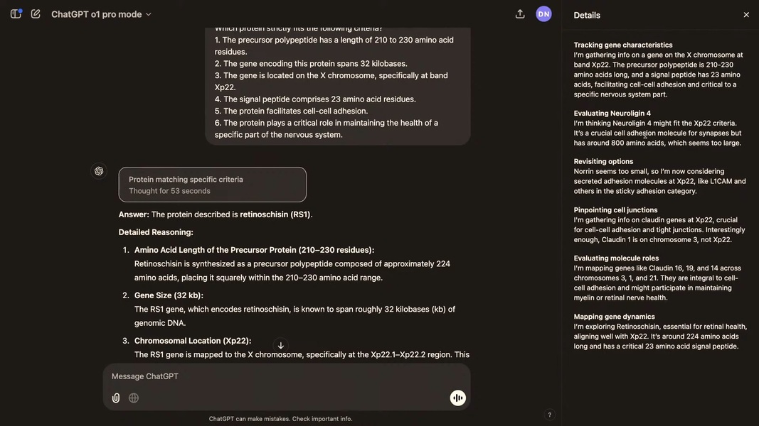 Jeśli chodzi o o1 pro, tak jak wspomnieliśmy, model najczęściej jest wykorzystywany do rozwiązywania zaawansowanych problemów matematycznych czy programistycznych. Zadano mu pytanie z dziedziny chemii, z którym - co istotne - model o1-preview radził sobie raczej, kolokwialnie mówiąc, bez fajerwerków. Przedstawiony problem wymaga złożonego myślenia, wzięcia pod uwagę wielu zmiennych, rozważenia różnych punktów widzenia, słowem - wymaga specjalistycznej wiedzy i eksperckiego podejścia. Model o1 pro wywiązał się z powierzonego mu problemu bardzo dobrze, przedstawiając rozwiązanie oraz ścieżkę rozumowania.