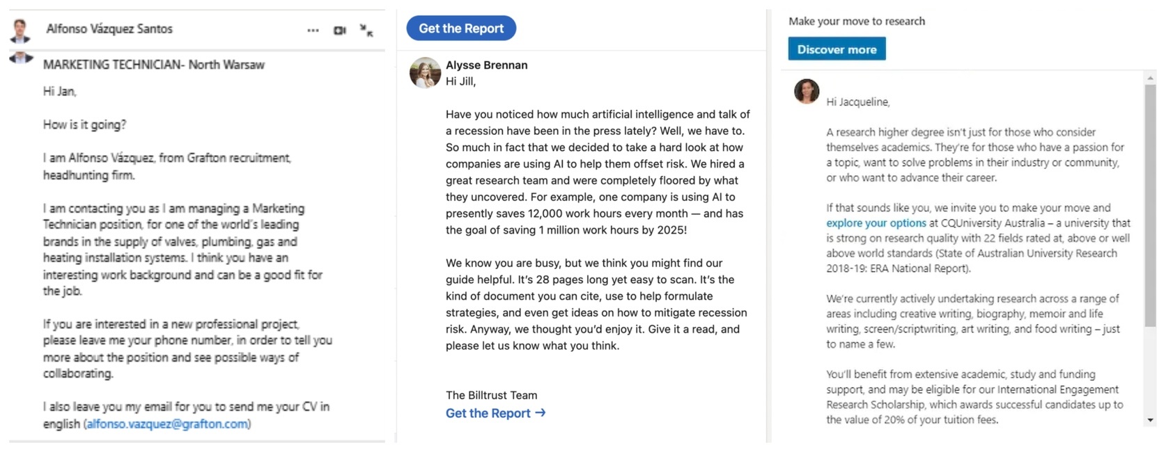 Opis: reklamy wysyłane bezpośrednio do skrzynek odbiorczych użytkowników LinkedIn.